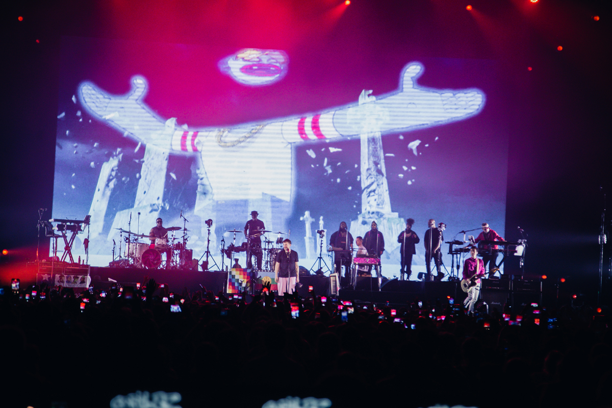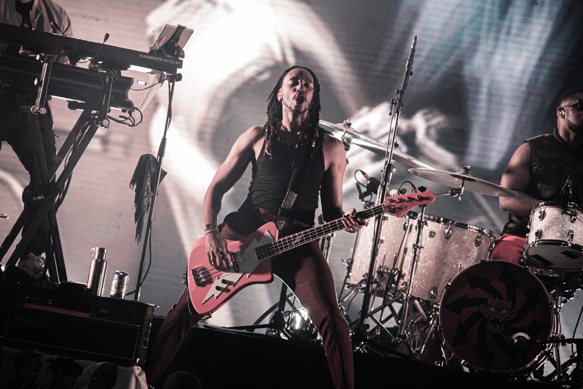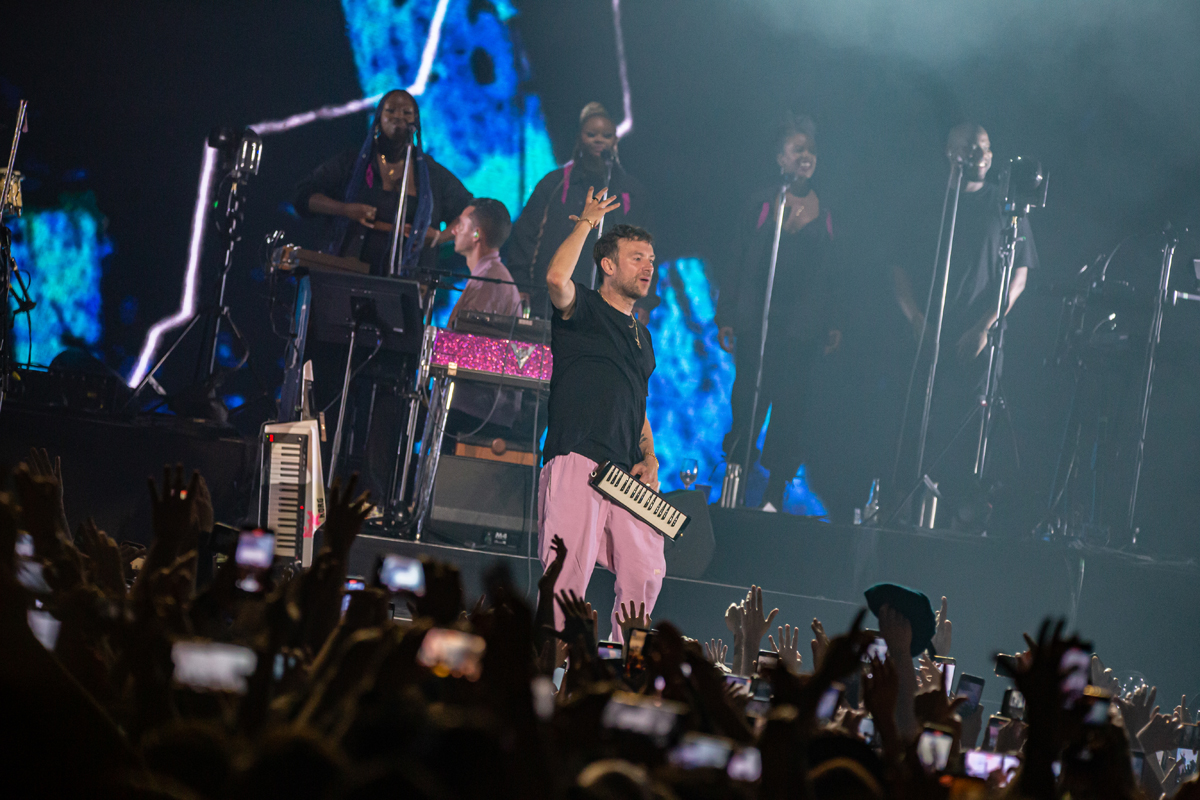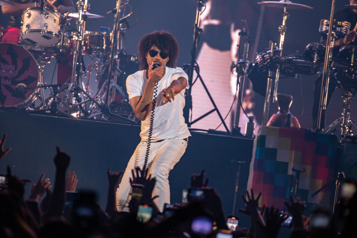 Volviendo a la música, una de las canciones que varió en el comienzo de sus espectáculos fue «Strange Timez». Siempre es un placer escuchar una colaboración con Robert Smith, pero cantar en vivo sobre esa pista grabada no fue la mejor opción. Es un recurso súper utilizado, especialmente en la actualidad con artistas del trap o reggaetón que cuentan con muchos feat, pero que no tuvo una gran ejecución. Funcionó, pero no brilló.