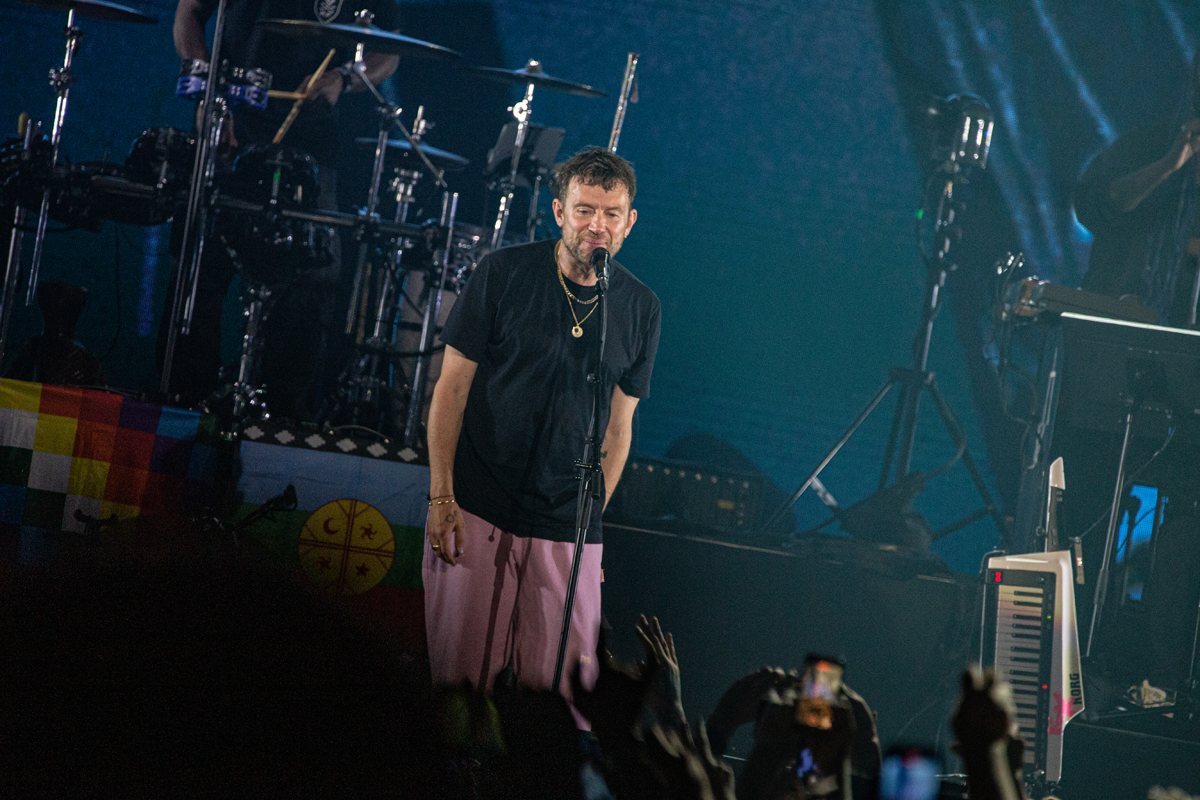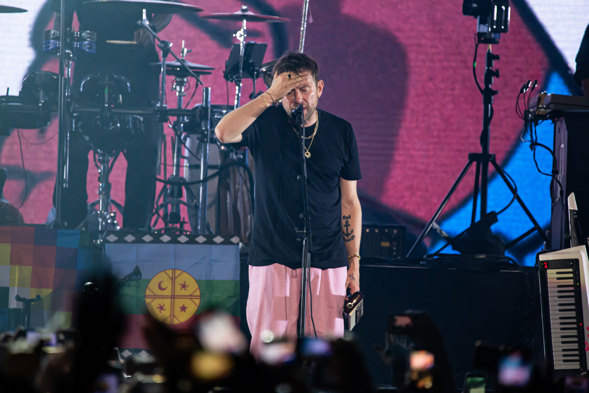De todas formas, muy profesional de su parte, terminó las canciones como pudo. Más de una vez fue cubierto por Damon Albarn, pero se notó demasiado. Y no solo en la música: su cara intentaba ser lo más amable posible frente a la frustración de no poder hacer lo que mejor sabe. Quizá a la distancia no se notó, pero los pisotones con los que intentaba hacer funcionar sus equipos lo dejó en evidencia.